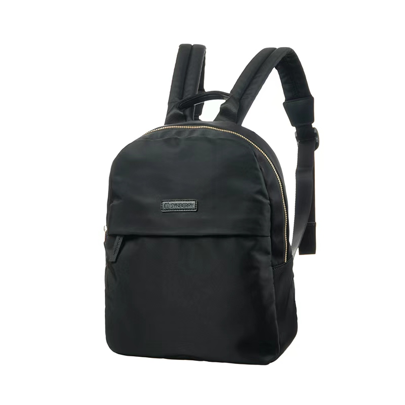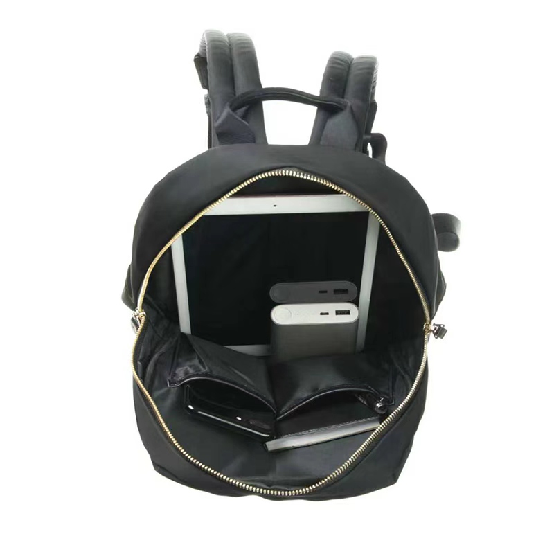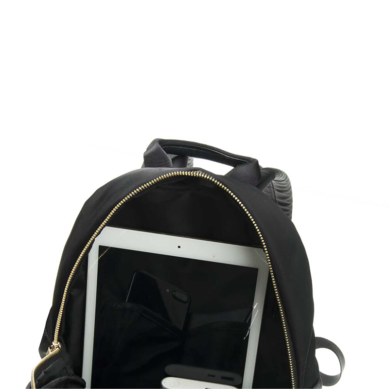 This small women’s ipad backpack is crafted from 230D water-repellent nylon, featuring a smooth surface that is easy to clean. There is a concealed inner zipper pocket at front panel, strategically hidden beneath a folded edge, only a zipper puller exposed for easy zip & unzip. This thoughtful design not only prevents water seepage in rainy days but also enhances the overall clean and streamlined appearance of the front panel. The combination of waterproof fabric and meticulous craftsmanship ensures that the bag remains neat and presentable across any commuting environments.
