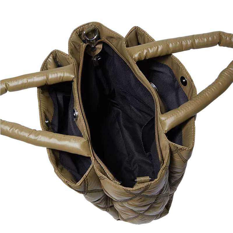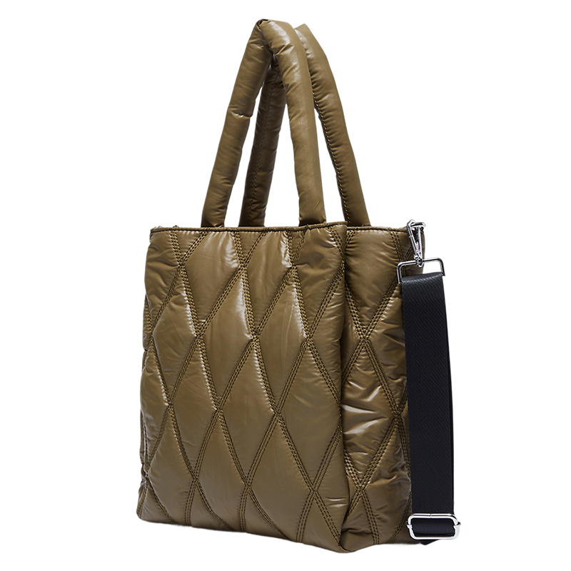 Upgrade your everyday style with this quilted nylon tote bag for women. This best puffer tote bag features a glossy finish with diamond quilted padding that gives it a soft, puffy texture. The thick padded handles provide a comfortable grip, while the adjustable and detachable shoulder strap allows you to carry it as a tote, shoulder bag, or crossbody bag.