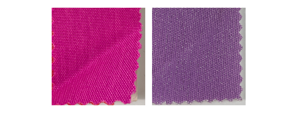 Nylon fabric: With a moisture regain of around 4 %, nylon filaments swell slightly, the microscopic surface pits are leveled out, and light reflects evenly, giving a silky, almost oily sheen. The gloss is softer and more refined, with a slight pearlescent effect. Especially under light, it does not appear glaring but instead gives a delicate, smooth texture. Nylon is soft and deforms little under stress, so its sheen stays constant, never flickering between bright and dull.