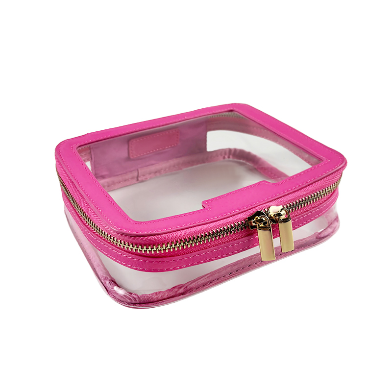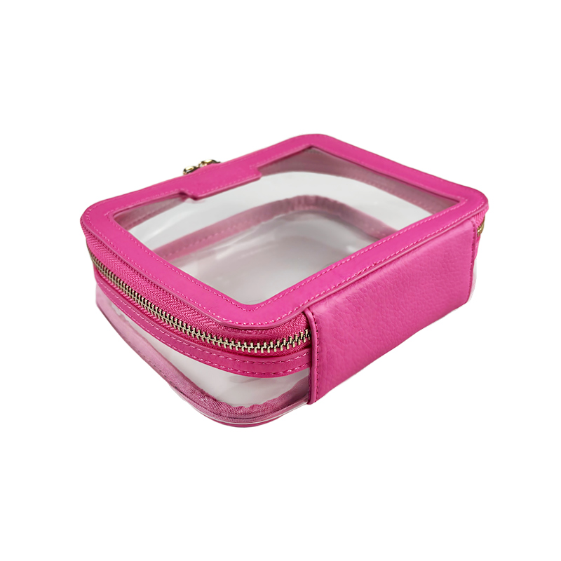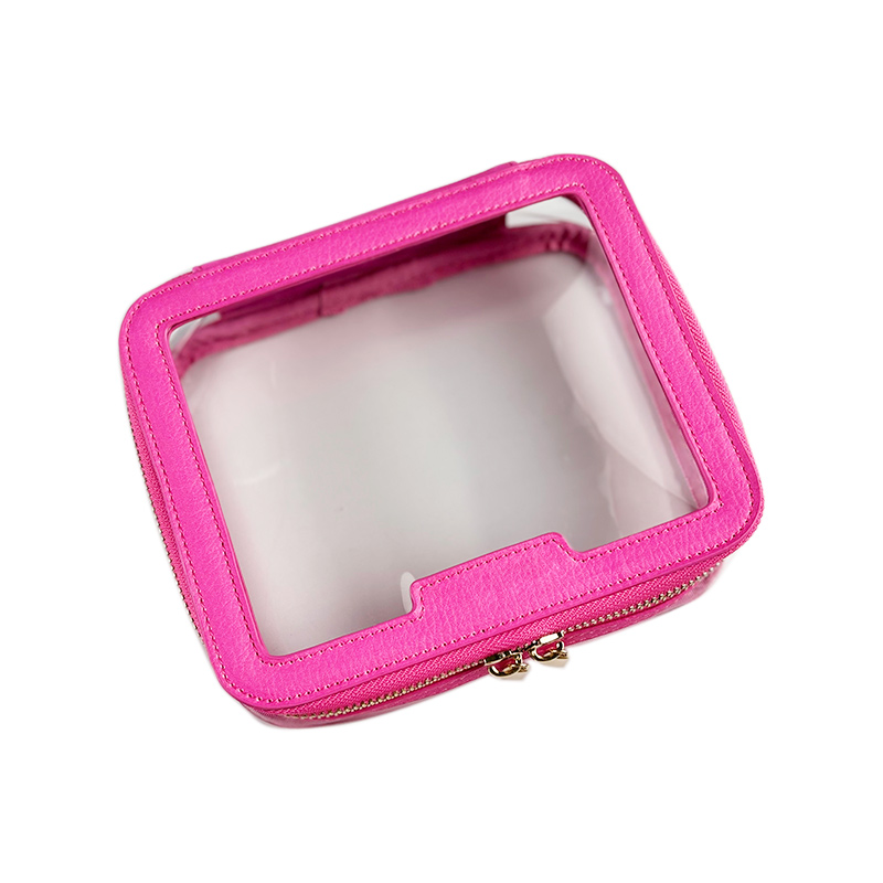 This rose pink cosmetic bag is designed for elegant, confident women who appreciate both beauty and functionality. Made from rose pink litchi-grain PU and transparent PVC, it adds a cheerful, stylish touch to your daily routine and keeps your essentials perfectly visible.