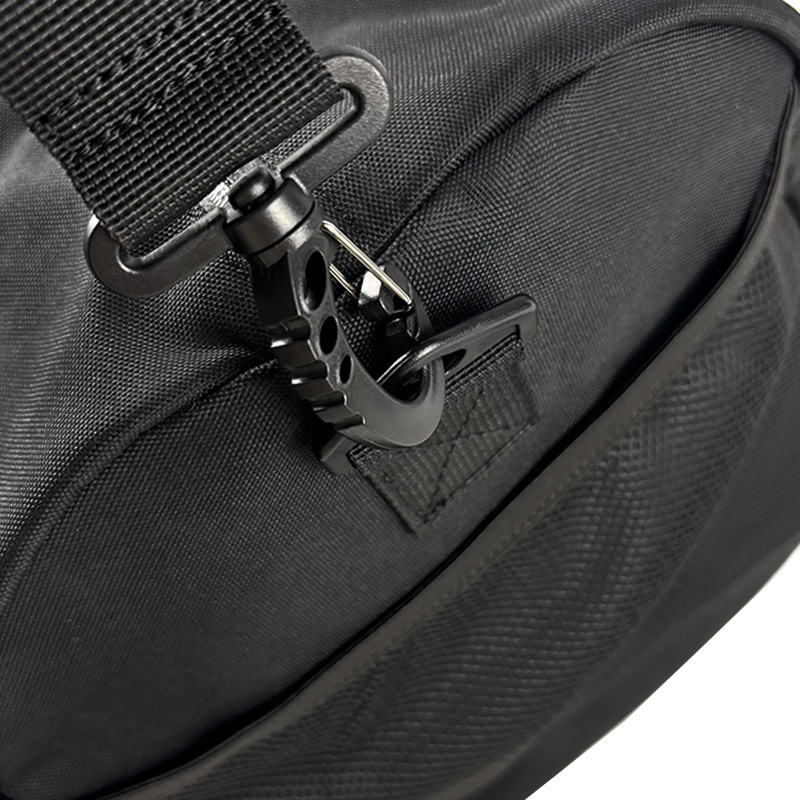 The bottom of the bag is reinforced with a 3mm PC board for excellent support and shape retention, even when the bag is fully packed. The widened polyester shoulder strap is soft yet durable, tested with over 400 cycles of 7kg load to ensure comfort. The handle is wrapped in EVA, offering a comfortable grip for carrying the bag by hand. The dual SBS zippers provide smooth operation, and the high-quality black plastic buckles ensure long-lasting durability.